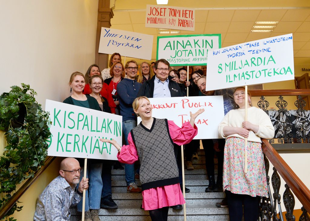 Ajatuspajan työskentelyosiossa osallistujat pääsivät työstämään omaa viestintäkampanjaa, jonka tuotoksena maakuntasali täyttyi iskulauseista ja marssikylteistä. ”Jos et toimi heti, maailmalle käy KalPaten!”, ”Ainakin jotain! – ilmastopuhe arkeen”, ”Metsät mulle – Hillot sulle”. Näitä marssikylttejä tullaan näkemään Puijo Summitissa 8.5.